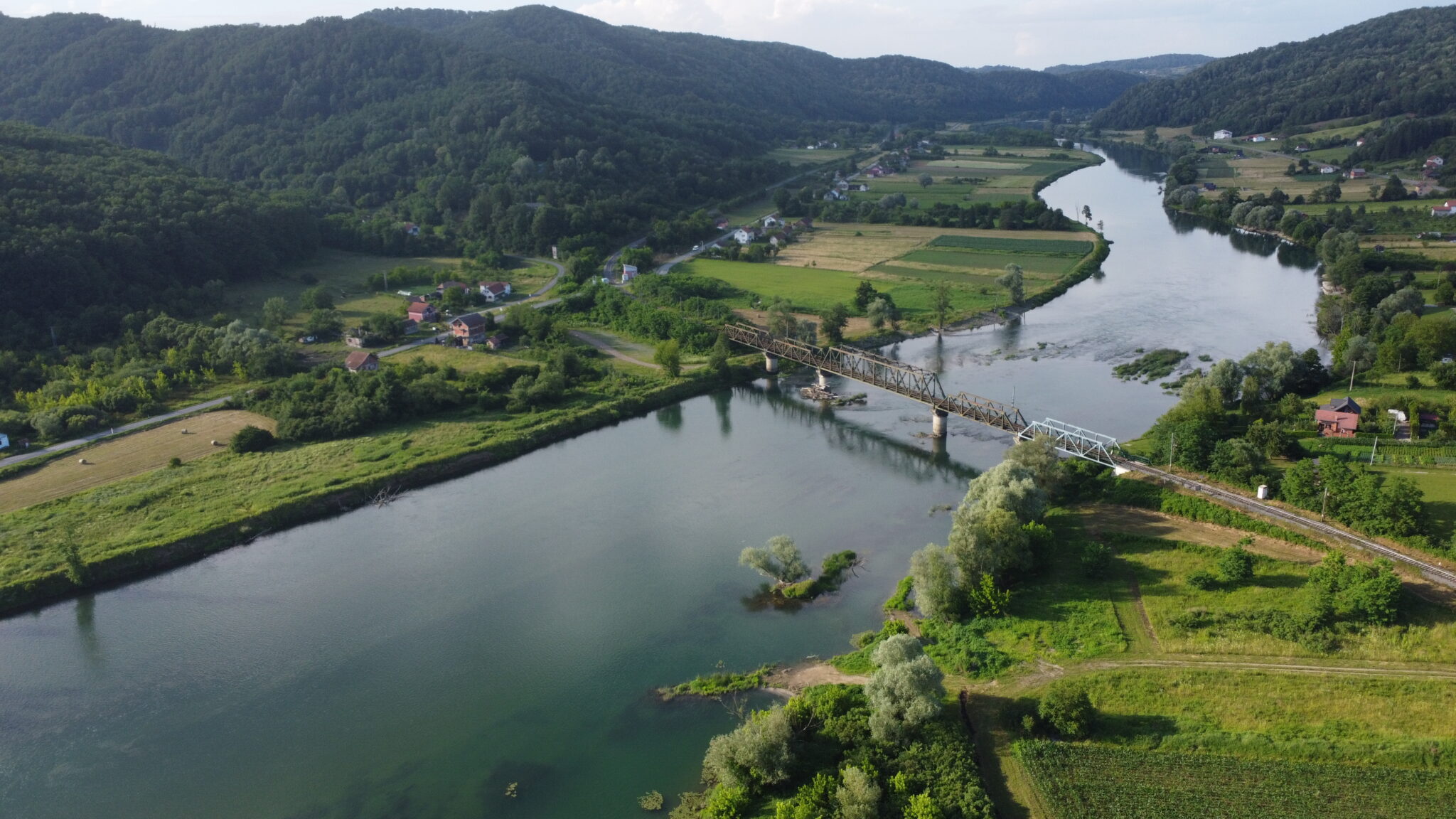 I’d crossed Republika Srpska throughout the day, on worn but charming trains, and then hopped on the bike to cycle to the border bridge. And then flying the drone in the evening light end up with pictures like this.