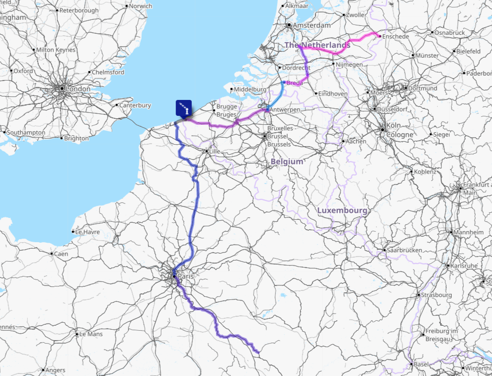 This is an extra #CrossBorderRail day – returning to France from Enschede. So as to avoid an expensive Thalys ticket I am making multiple changes across Netherlands in the morning, then taking a train from Antwerpen to De Panne in Belgium. There I will investigate the abandoned cross border line to Dunkerque that I have not yet visited. It was closed in the 1980s, and re-opening has been debated ever since. You can see these borders on my All The Borders map.