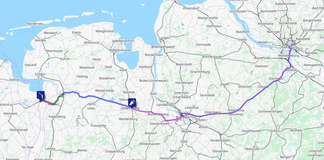 So I am going to go and check it out. I will take trains from Hamburg via Bremen to Leer, hop on the rain replacement bus to Weener, and then the train just across the border to Bad Nieuweschans in Netherlands. From there I will hop on my bike, and head back via Weener to see the damaged bridge and building site, and then cycle back to Leer. And the event that evening will be in Oldenburg.